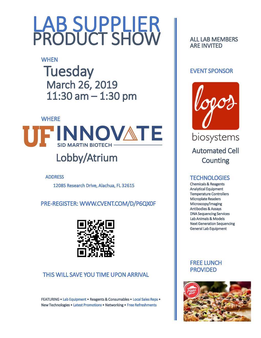 26mar11:30 am1:30 pmVendor Show at UF Innovate | Sid Martin BiotechLab Supplier Product Show